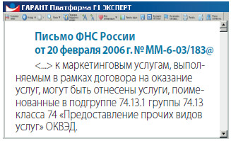 — Прежде всего надо различать маркетинговые и рекламные услуги. Маркетинг — это предпринимательская деятельность, которая управляет продвижением товаров и услуг от производителя к потребителю. Кроме того, под маркетингом подразумевается деятельность по изучению текущего рынка сбыта. Однако определения понятия "маркетинговые услуги" налоговое законодательство, к сожалению, не содержит. Тем не менее при отнесении услуг к рекламным или маркетинговым рекомендую руководствоваться нормами Федерального закона "О рекламе"3. Кроме того, есть письмо ФНС России, согласованное с Минфином России, о порядке применения положений статьи 148 Налогового кодекса в отношении маркетинговых и рекламных услуг. Обратите внимание на него.