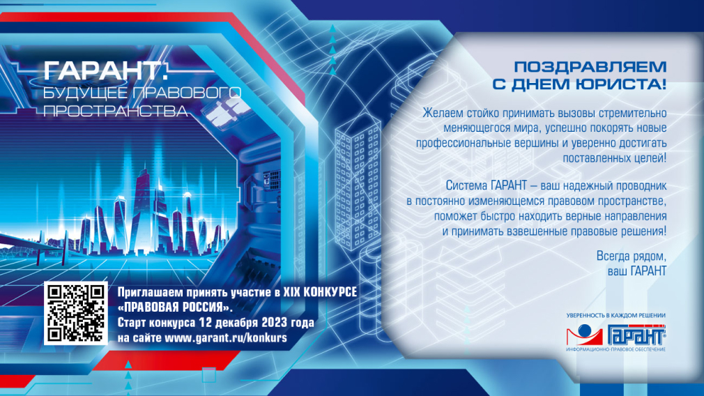 Новости и аналитика Важная тема 2023 Компания "Гарант" поздравляет с Днем юриста!