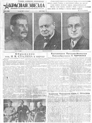 | Обложка газеты "Красная звезда" от 9 мая 1945 года | Обложка газеты "Красная звезда" от 10 мая 1945 года |