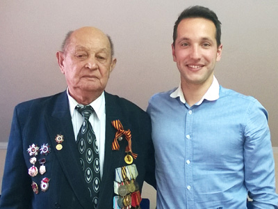 | Анатолий Владимирович Парфенов с внуком Олегом Разумным, заместителем директора группы компаний "Балко ГМ", регионального партнера компании "Гарант". Несмотря на преклонный возраст – 92 года, Анатолий Владимирович полон сил и энергии – в офисе группы компаний "Балко ГМ" танцует военный вальс с главным бухгалтером компании Голубевой Лилией Николаевной | |