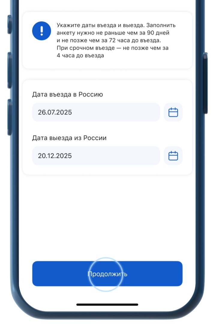 Зайти в приложении ruID и приступить к заполнению заявления о въезде в Россию.