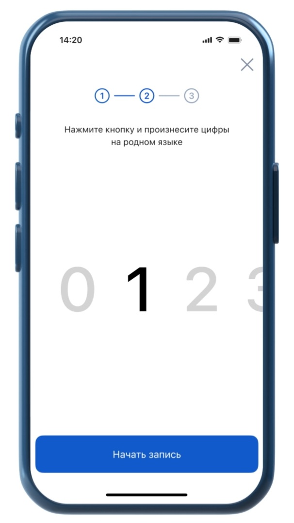Произнести вслух и записать предлагаемые приложением к озвучиванию три числа. Чтобы качественно записать голос, нужно делать это в тишине, исключив любые шумы. Цифры следует произносить четко, обычным голосом, на привычном для пользователя языке, следя за темпом речи (нельзя тараторить или, наоборот, говорить слишком медленно).