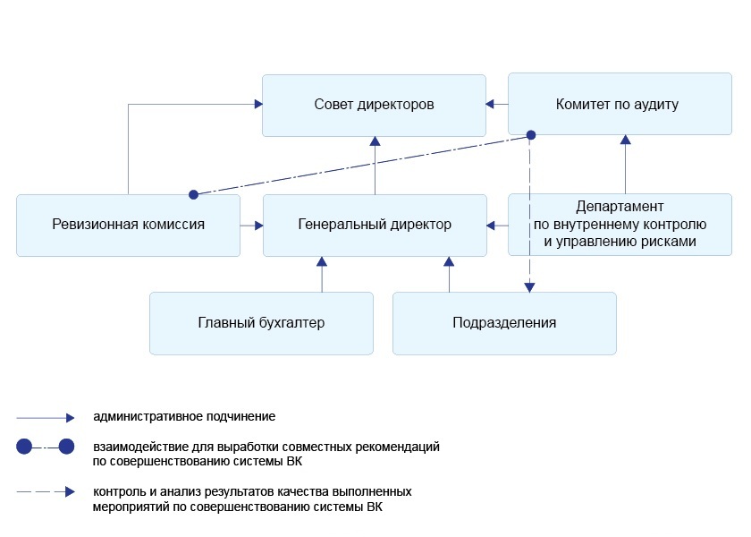- взаимодействует с ревизионной комиссией по выработке совместных рекомендаций по совершенствованию системы внутреннего контроля.