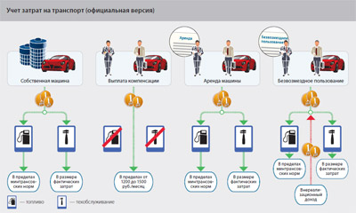Расходы на автотранспорт есть практически у любой фирмы. Если компания пользуется своей машиной, то ей как минимум приходится оплачивать бензин. Если машина принадлежит, например, ее сотруднику, есть несколько вариантов оплаты подобных затрат. Например, выдача ему компенсации, получение машины в безвозмездное пользование или аренду. Расскажем о нюансах учета этих расходов, а также плюсах и минусах каждого из предложенных вариантов их оплаты.