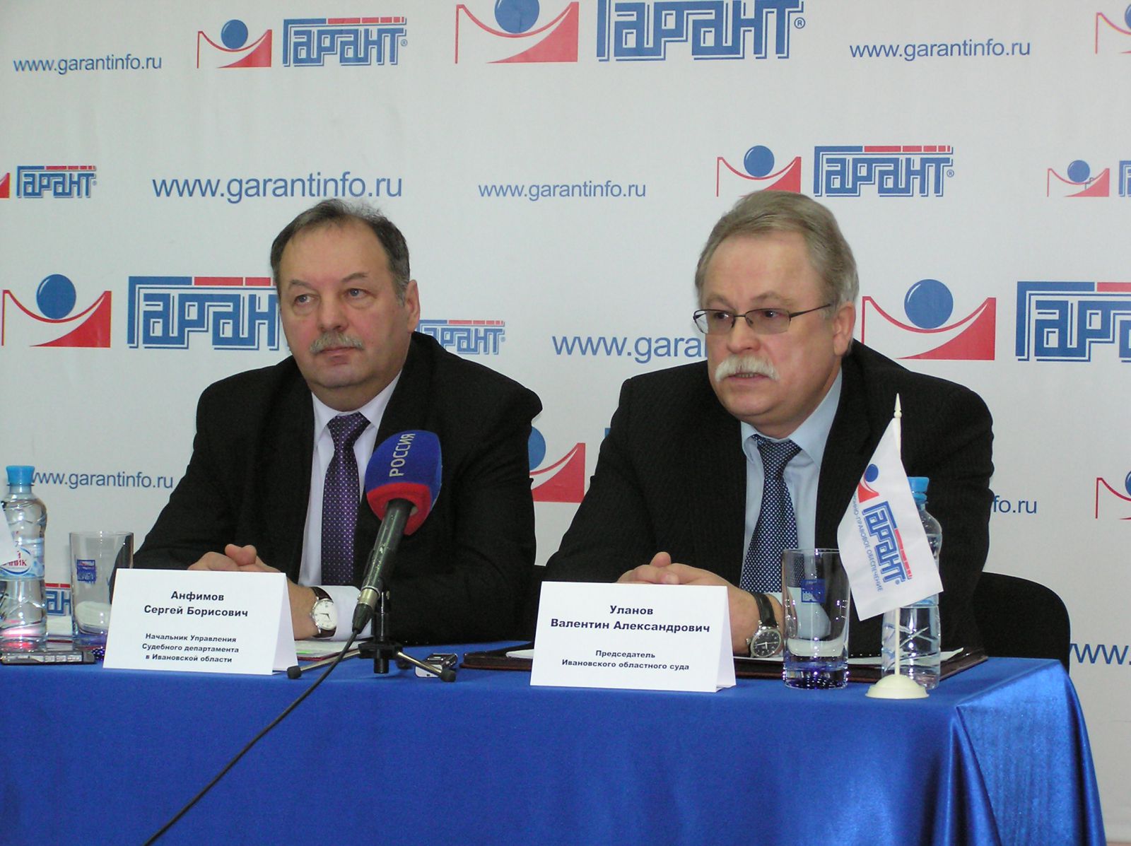26 февраля 2013 года в ООО "Гарант-Инфо" состоялась интернет-конференция председателя Ивановского областного суда В.А. Уланова и начальника Управления Судебного департамента в Ивановской области С.Б. Анфимова. Тема интернет-конференции: "Итоги работы судов Ивановской области за 2012 год, перспективы развития судопроизводства в текущем году"