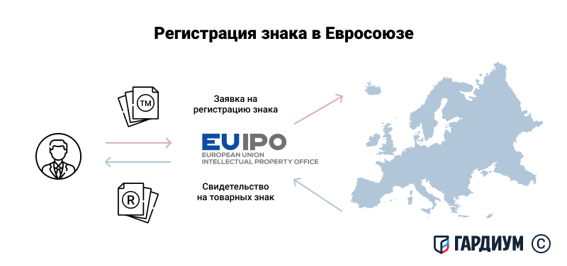 На территории Евросоюза действует EUIPO — европейское агентство интеллектуальной собственности. С его помощью можно пройти единую процедуру регистрации и получить международный товарный знак в Европе, который будет действовать на всей территории ЕС 10 лет. Его называют европейский товарный знак — EUTM. Действие EUTM регулируется Регламентом Европарламента № 2017/1001 от 14.06.2017.