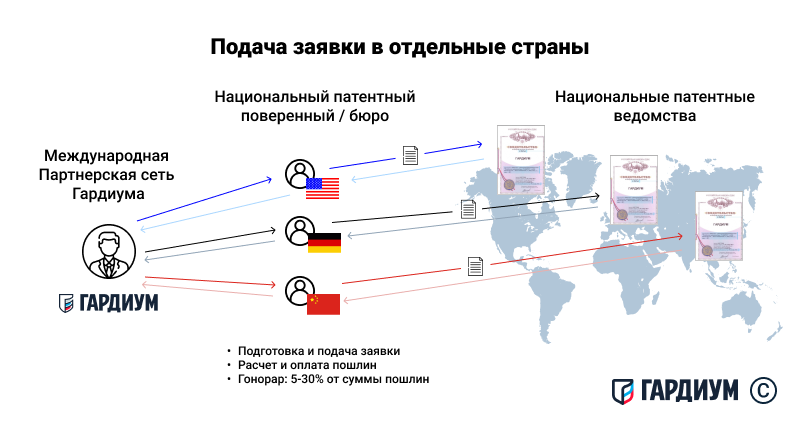 Подавать заявку компании смогут напрямую в национальное ведомство или через аккредитованных юристов. В штате Гардиума есть евразийские патентные поверенные, специализация которых — представительство интересов доверителей в ЕАПО. Их участие гарантирует положительный результат международной регистрации товарного знака на территории стран-членов ЕАЭС.