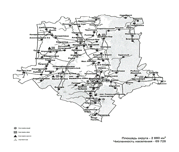 Карта точек продажи овощей, табака, спиртного и расположения объектов спортивной инфраструктуры в Никифоровском муниципальном округе