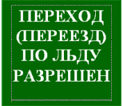 5. | Переход (переезд) по льду разрешен | весь покрашен в зеленый цвет. Надпись посередине. Знак укрепляется на столбе белого цвета |
