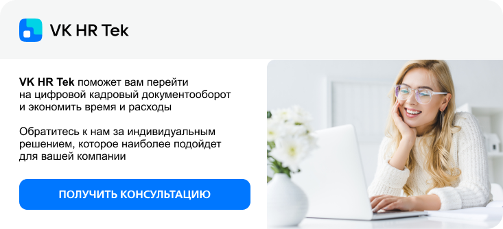 Переходите на сайт VK HR Tek, чтобы узнать больше о возможностях системы КЭДО для вашей компании.