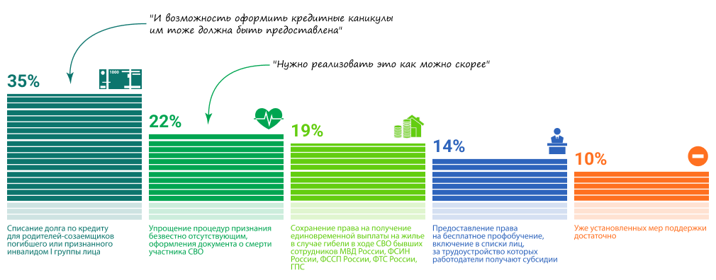 Мы узнали у читателей портала ГАРАНТ.РУ, какие из обсуждаемых сейчас мер поддержки членов семей участников СВО они считают необходимыми.