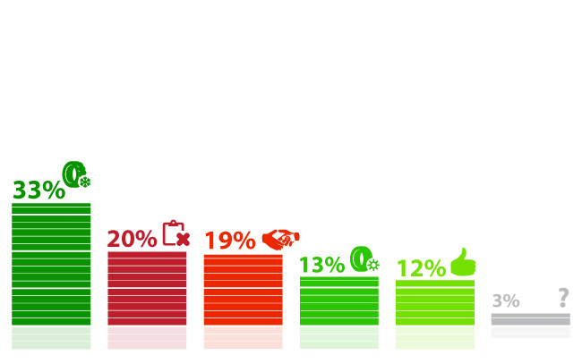 33% наших читателей поддерживают эту идею, но с оговоркой. В каждом регионе период использования зимней резины должен определяться отдельно, полагают они. "Все-таки есть разница между Крымом и северными регионами страны, где снег выпадает с разницей в несколько месяцев. Нельзя заставлять водителей южных регионов начинать зимний сезон одновременно с северными", – высказывает свою точку зрения один участник опроса. "Страна у нас большая, различных запретов и штрафов установлено и так немало, поэтому в этом вопросе главное определить разумные и комфортные правила. К примеру, можно было бы отдать право устанавливать конкретные периоды использования той или иной авторезины регионам. Люди будут охотнее соблюдать ограничения, если они соответствуют реальным погодным условиям", – подчеркивает другой респондент.