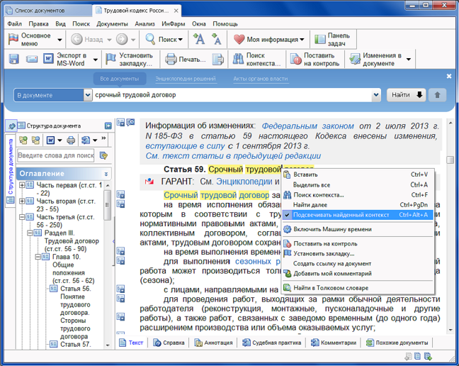Например, найдем документ, определяющий понятие срочный трудовой договор.