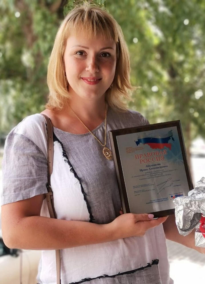 | Аболонкова ирина АЛЕКСАНДРОВНА г. Новосибирск Руководитель юридической службы ООО "ЮниЛад" Лауреат Конкурса (III место) в номинации "Гражданское право". |