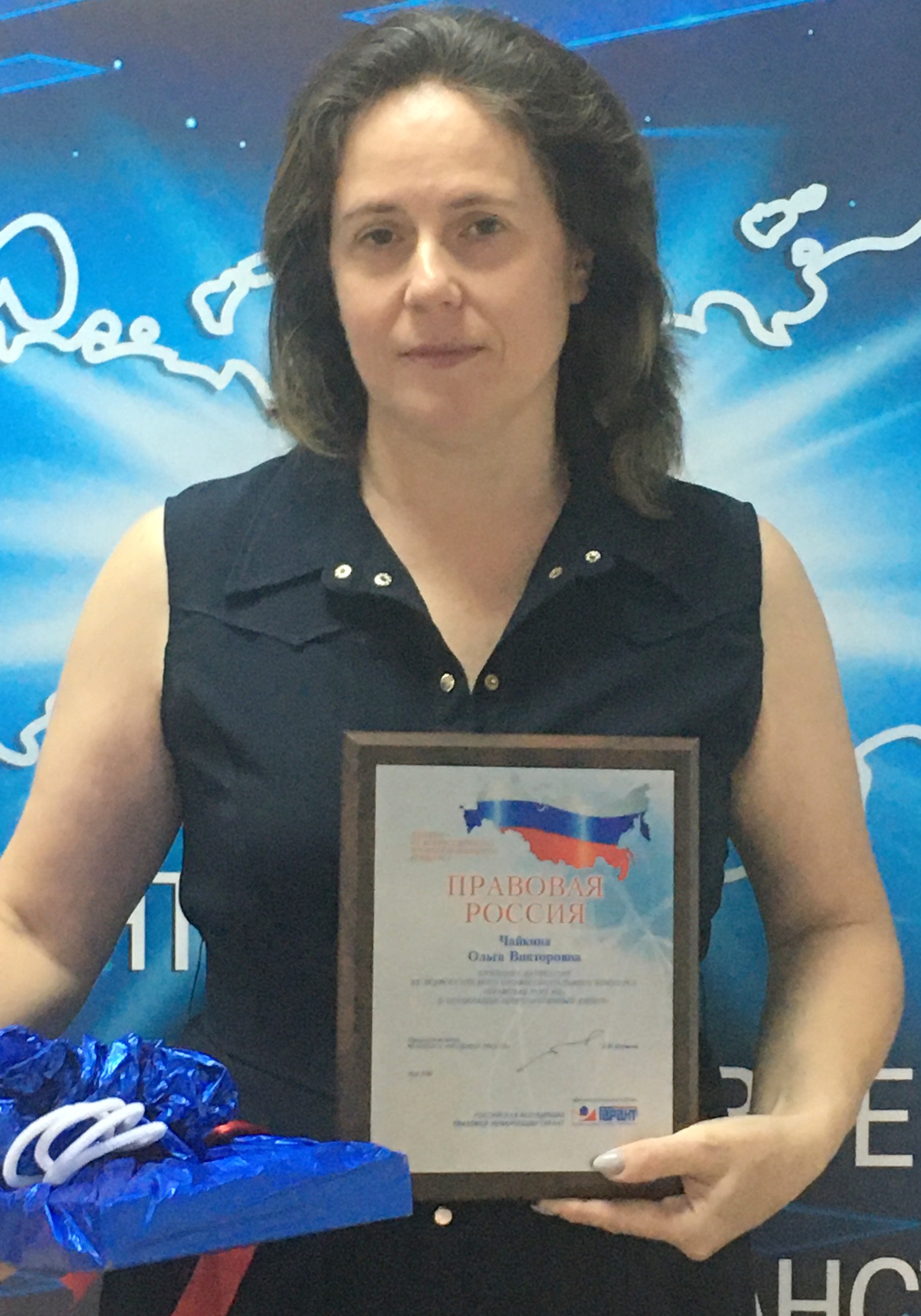 | ЧАЙКИНА ОЛЬГА ВИКТОРОВНА г. Краснодар Старший партнер, руководитель практики корпоративного права, недвижимости и ценных бумаг Лауреат Конкурса (II место) в номинации "Корпоративный юрист ". |