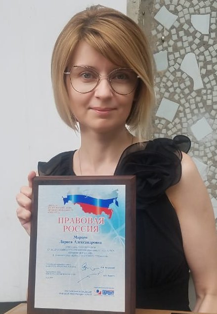 | МАРЦЕН ЛАРИСА АЛЕКСАНДРОВНА г. Пятигорск Главный юрисконсульт юридической службы Победитель Конкурса (I место) в номинации "Юрист широкого профиля". |