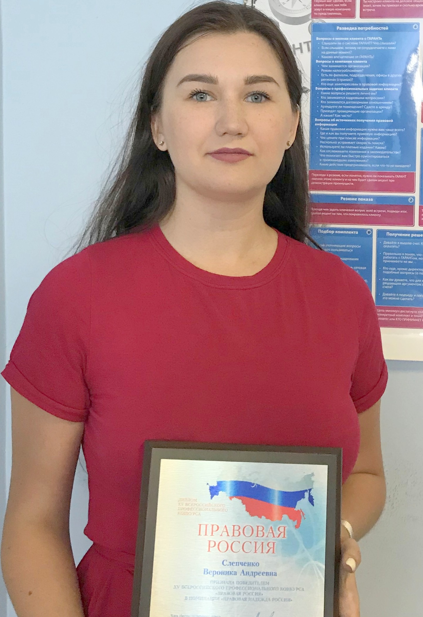 Студентка Ростовского филиала Победитель Конкурса (I место) в номинации "Правовая надежда России". |