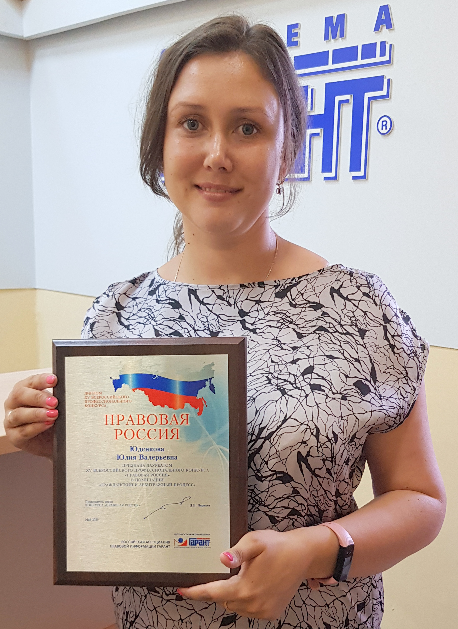 Ведущий юрисконсульт Победитель Конкурса (I место) в номинации "Трудовое право". |