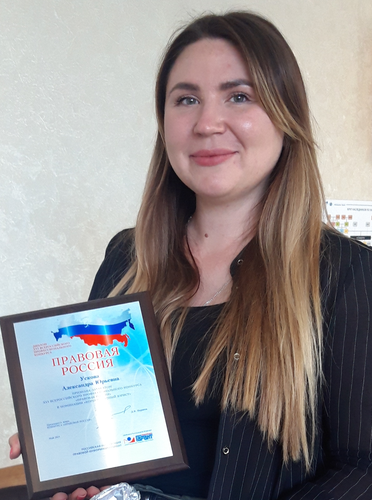 Ведущий юрисконсульт Победитель Конкурса (I место) в номинации «Трудовое право». |