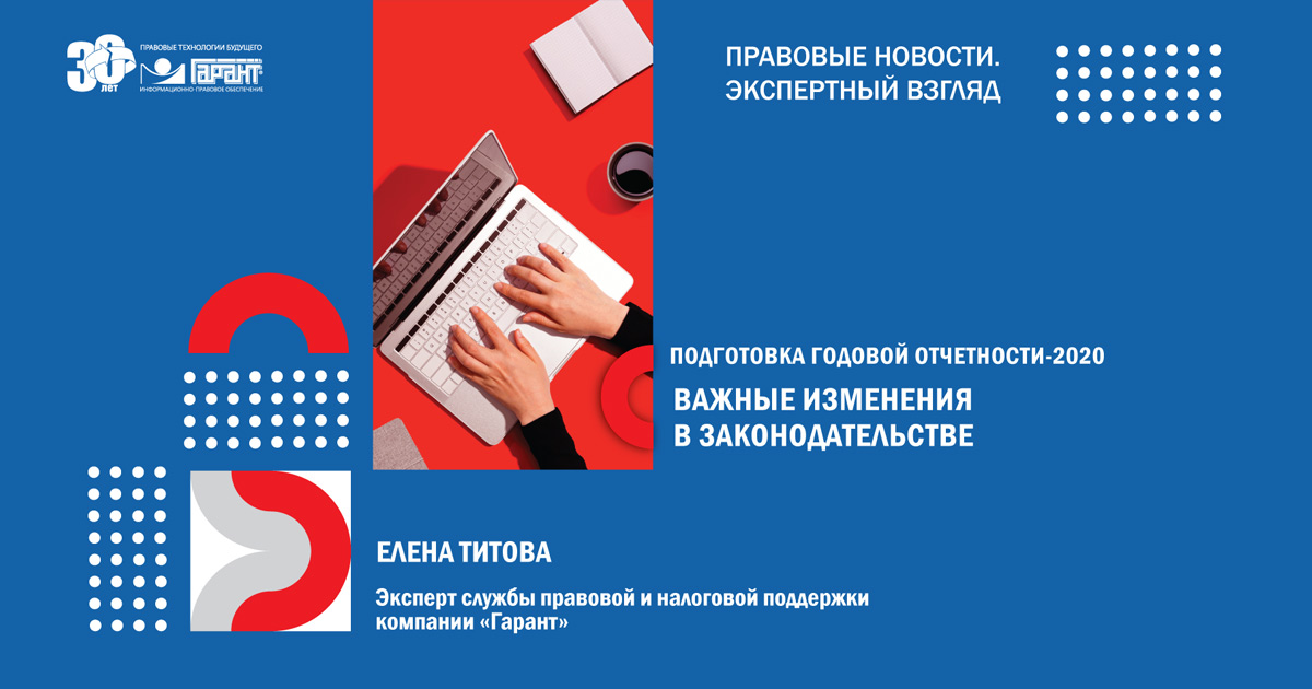 В 2020 году произошли важные изменения, связанные с реформами в налоговом и бухгалтерском законодательстве. Елена Титова, эксперт службы Правовой и налоговой поддержки компании "Гарант", расскажет обо всех значимых нововведениях, которые помогут подготовиться к годовой отчетности.