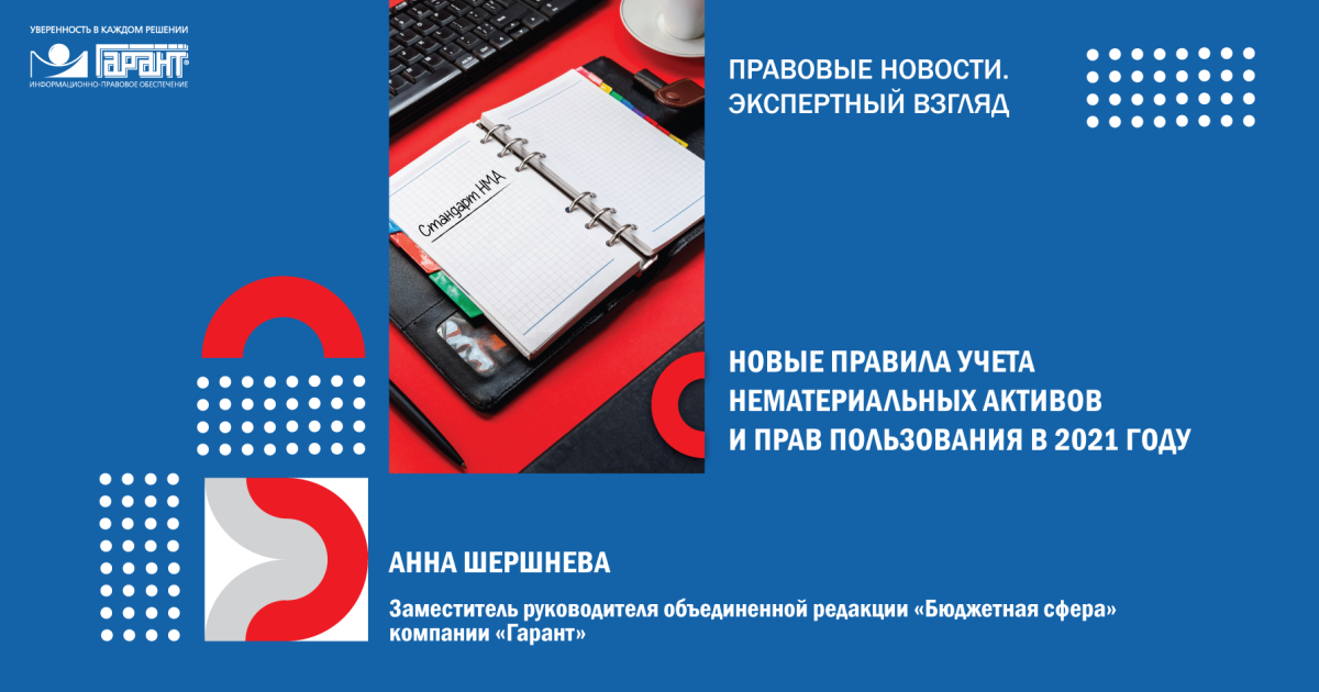 Порядок учета нематериальных активов изменился. С января 2021 года начинает действовать Федеральный стандарт. Что такое стандарт НМА? Как на него перейти? Анна Шершнева, заместитель руководителя объединённой редакции "Бюджетная сфера" компании "Гарант", расскажет обо всех нововведениях.
