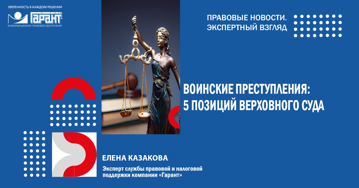 Верховный Суд РФ обобщил практику судов по делам о преступлениях против воинской обязанности и военной службы, а также скорректировал ряд своих позиций по уклонению от службы. Самое интересное – в этом обзоре эксперта службы Правового консалтинга ГАРАНТ Казаковой Елены.