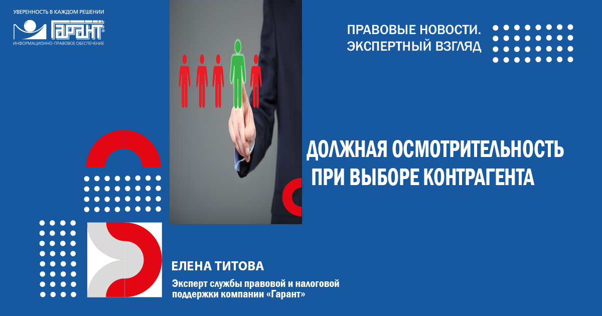 Взвешенный подход к выбору контрагента важен не только для уверенности в качественном исполнении договора, но также имеет значение и для минимизации налоговых рисков. О правилах, которые необходимо соблюсти до заключения договора с новым поставщиком (исполнителем), расскажет эксперт службы Правового консалтинга ГАРАНТ Титова Елена.
