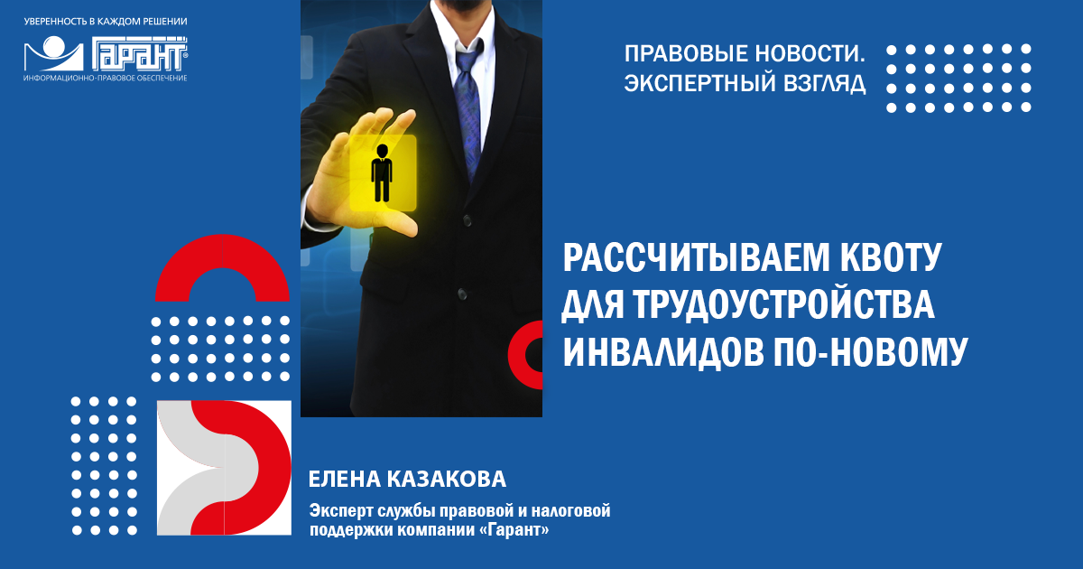 С 1 сентября вступают в силу правила выполнения работодателем квоты для приема на работу инвалидов, которые изменяют порядок расчета квоты, а также вводят случаи, когда работодатель освобождается от выполнения квоты. Подробнее по этому вопросу рассказывает эксперт службы Правового консалтинга ГАРАНТ Казакова Елена.
