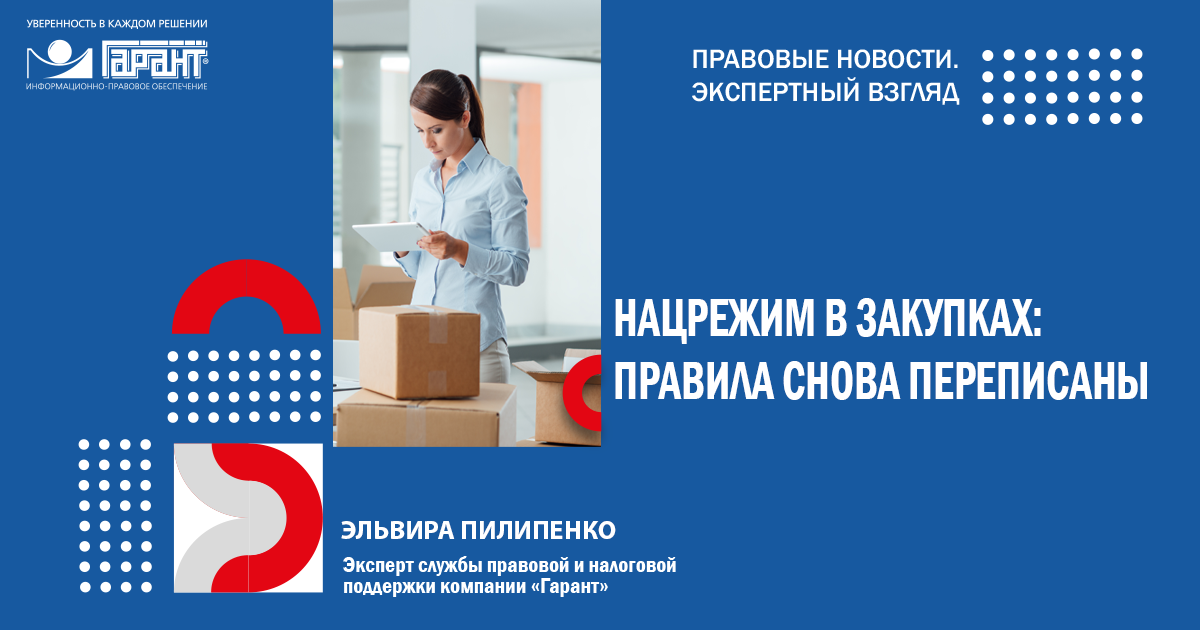 С 19 июня правила применения национального режима в закупках изменились. Они касаются подтверждения происхождения товара, послабления для участников и 8 оснований для закупки без ограничений, включая секретные. Разбираем все ключевые изменения в нацрежиме. Обзор подготовил эксперт службы Правового консалтинга ГАРАНТ Эльвира Пилипенко.