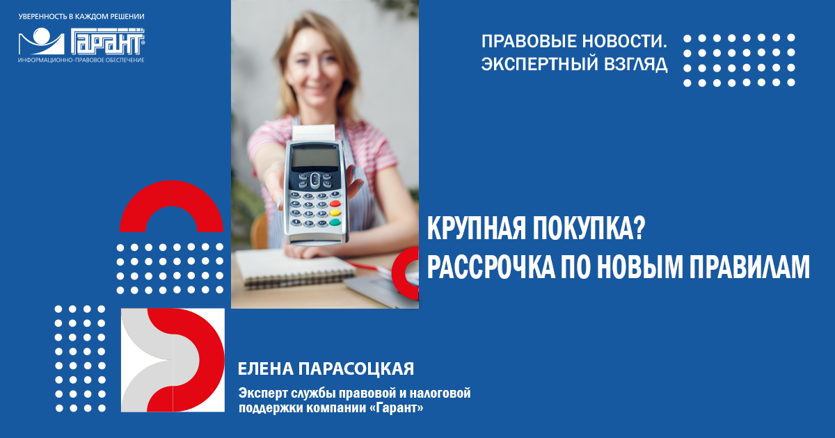 С 1 апреля 2026 года вступает в силу Закон о деятельности по предоставлению сервиса рассрочки. Об изменениях для бизнеса и потребителей узнайте из выпуска Елены Парасоцкой, эксперта службы Правового консалтинга ГАРАНТ.