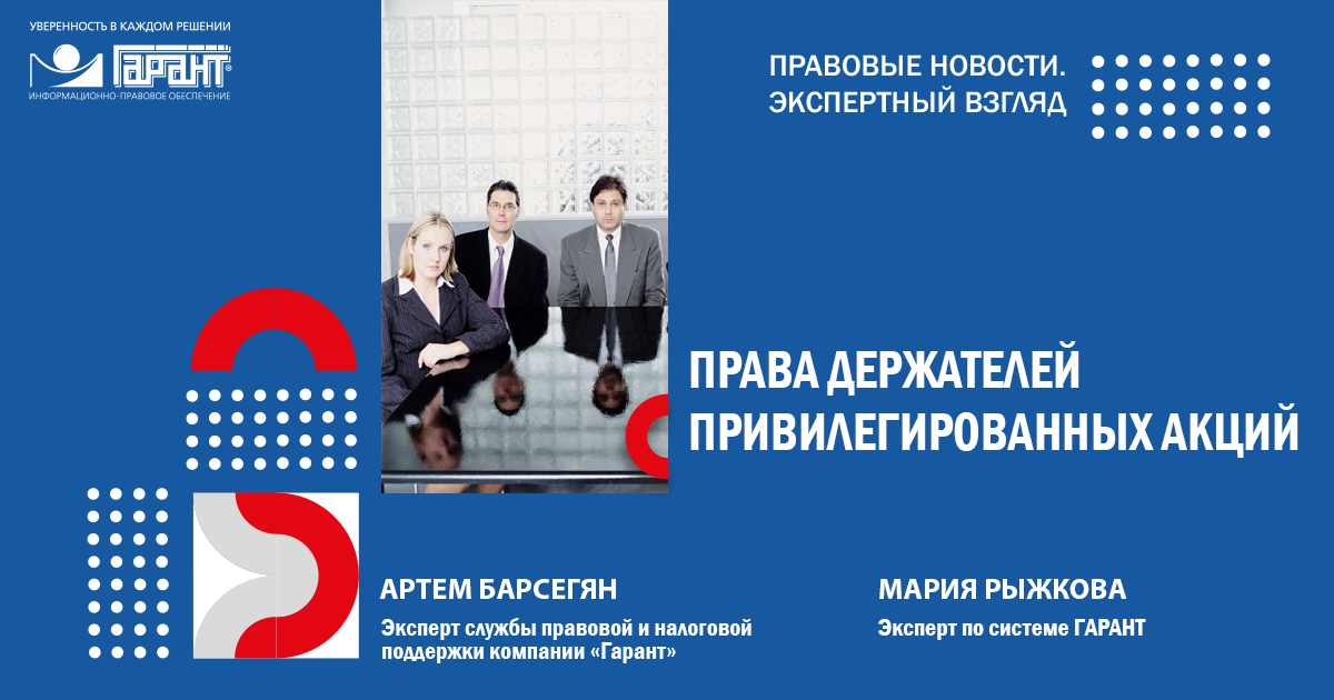 Конституционным Судом принято постановление, посвященное вопросам защиты интересов владельцев привилегированных акций, которым не выплачены дивиденды. Суд оценил нормы Закона "Об акционерных обществах" на предмет соответствия Конституции и установил правила, которые должны применяться до внесения в закон необходимых поправок. Подробнее расскажет эксперт службы Правового консалтинга Артем Барсегян.