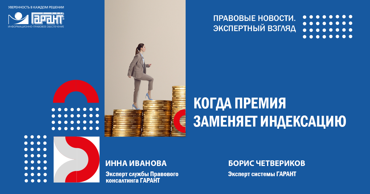 Эксперт Правового консалтинга ГАРАНТ Инна Иванова расскажет, в каких случаях повышение оклада и выплата премий могут рассматриваться как исполнение обязанности работодателя по индексации заработной платы, а также сформулирует основные положения об индексации, исходя из сложившейся судебной практики и разъяснений госорганов.