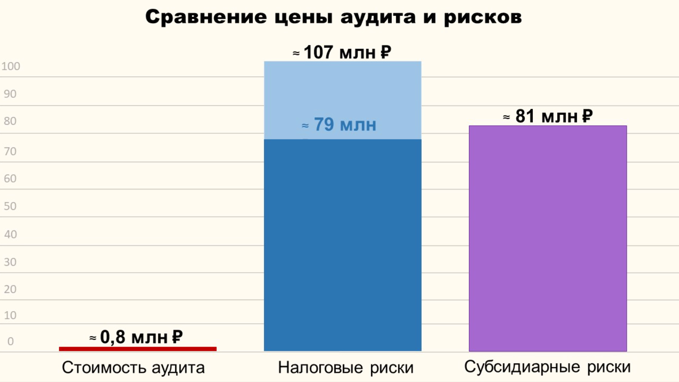 Сравнивайте не только цены аудита, но и размер налоговых и субсидиарных рисков, которые реальны в течение 3-10 лет: