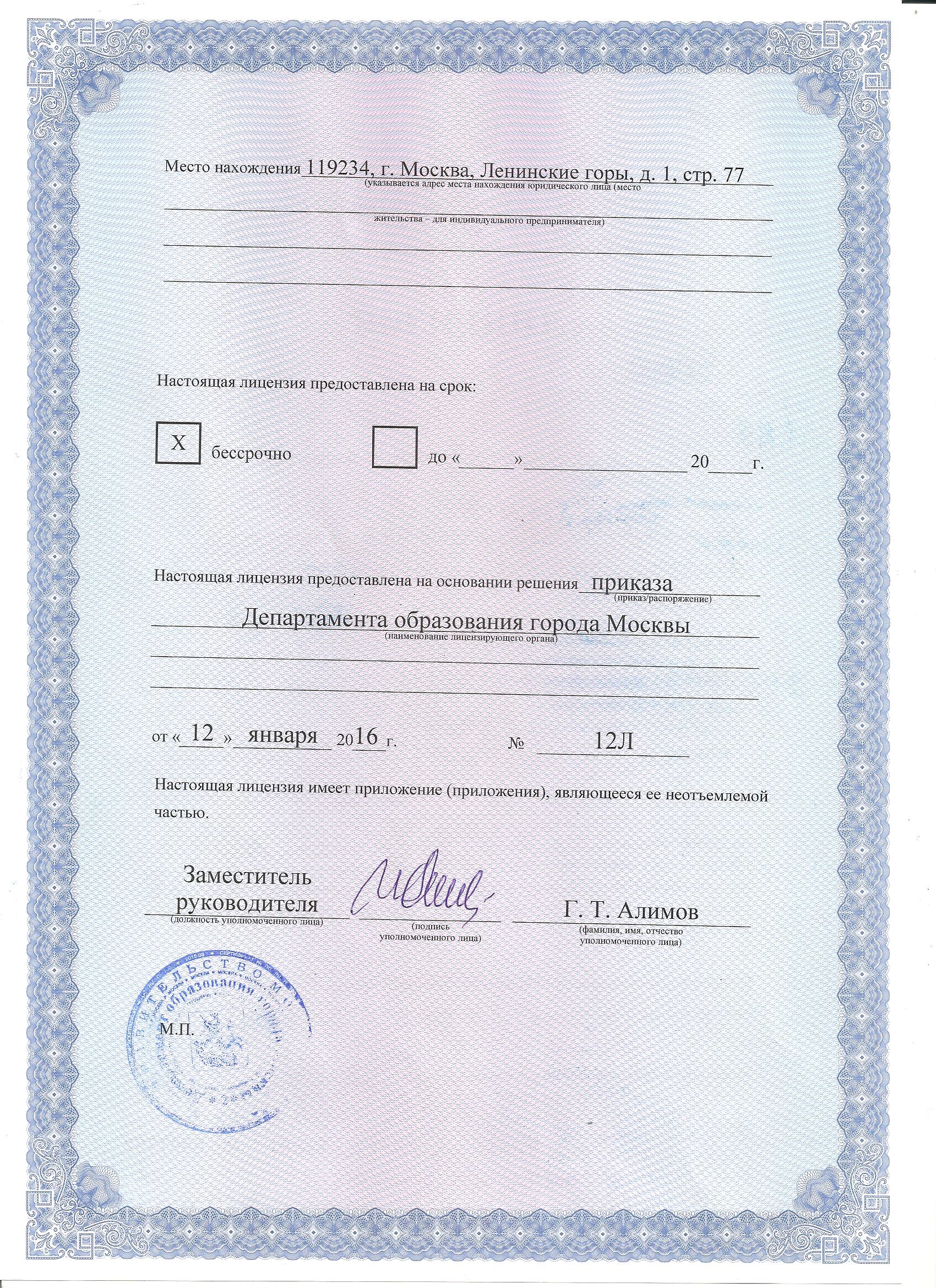Местонахождение: 119234, г. Москва, ул. Ленинские горы, д. 1, стр. 77.