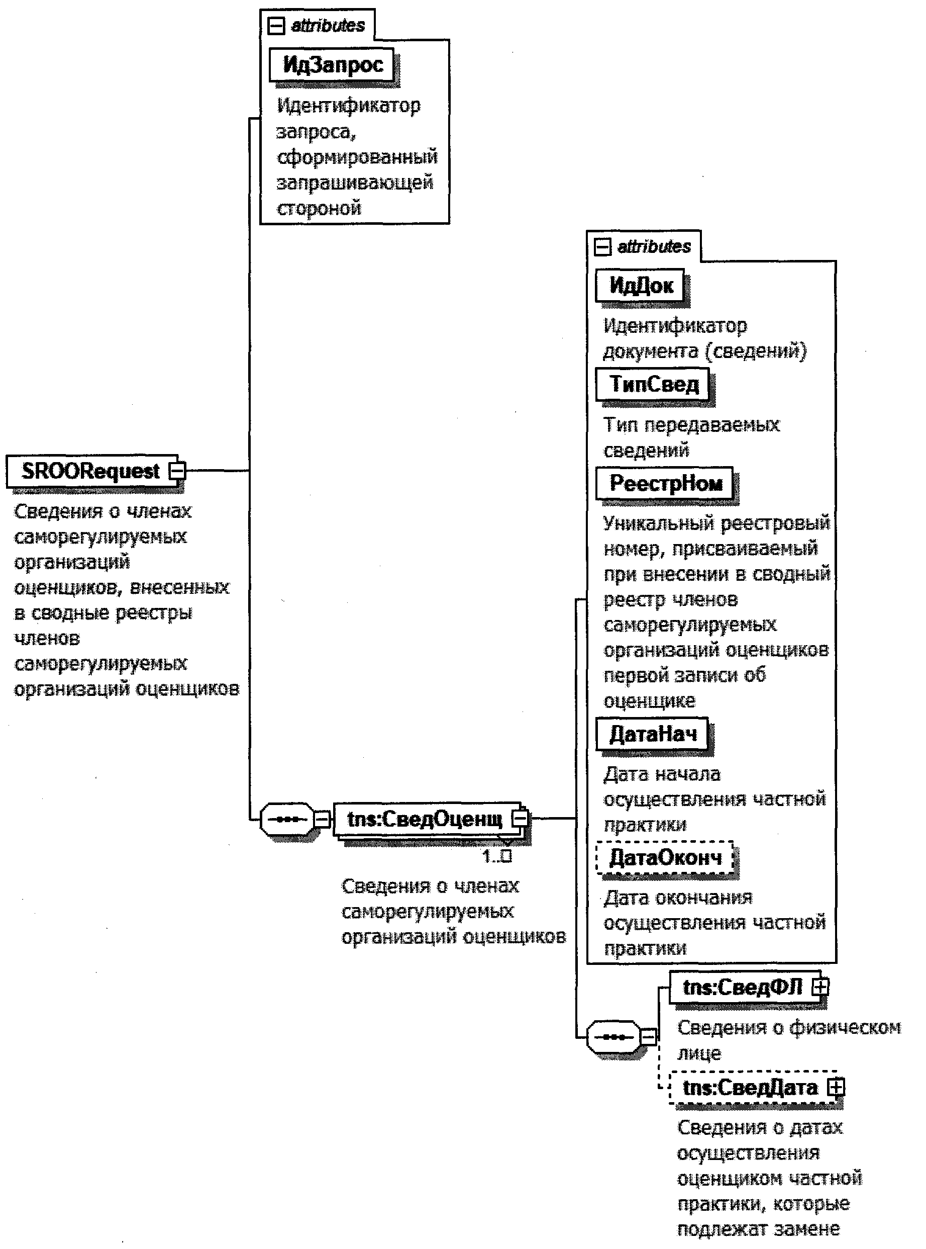 SROORequest - сведения о членах саморегулируемых организаций оценщиков, внесенных в сводные реестры членов саморегулируемых организаций оценщиков;