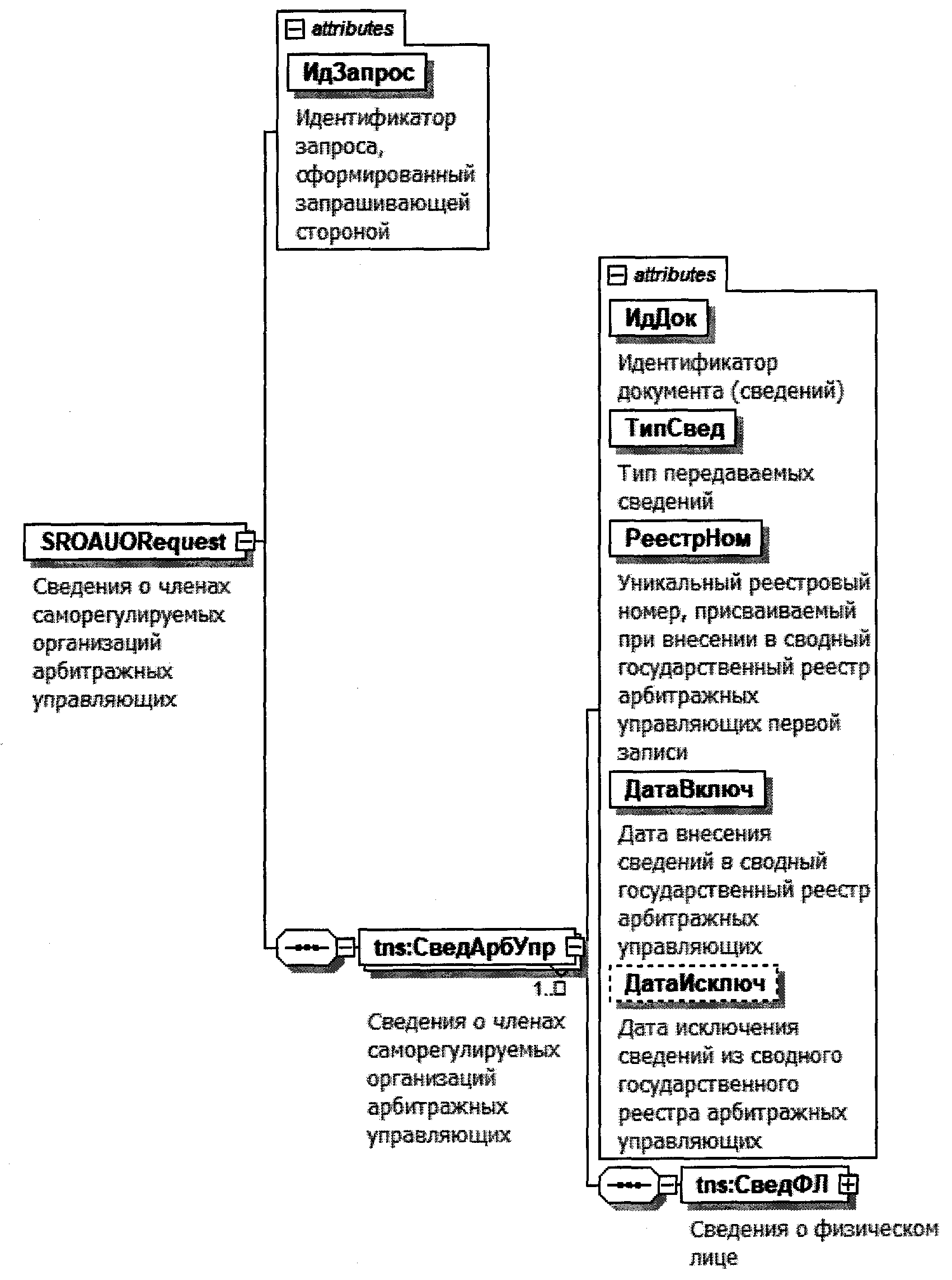 | Сведения о членах саморегулируемых организаций арбитражных управляющих | СведАрбУпр | С | ОМ | Состав элемента представлен в табл. 4.1.2 |