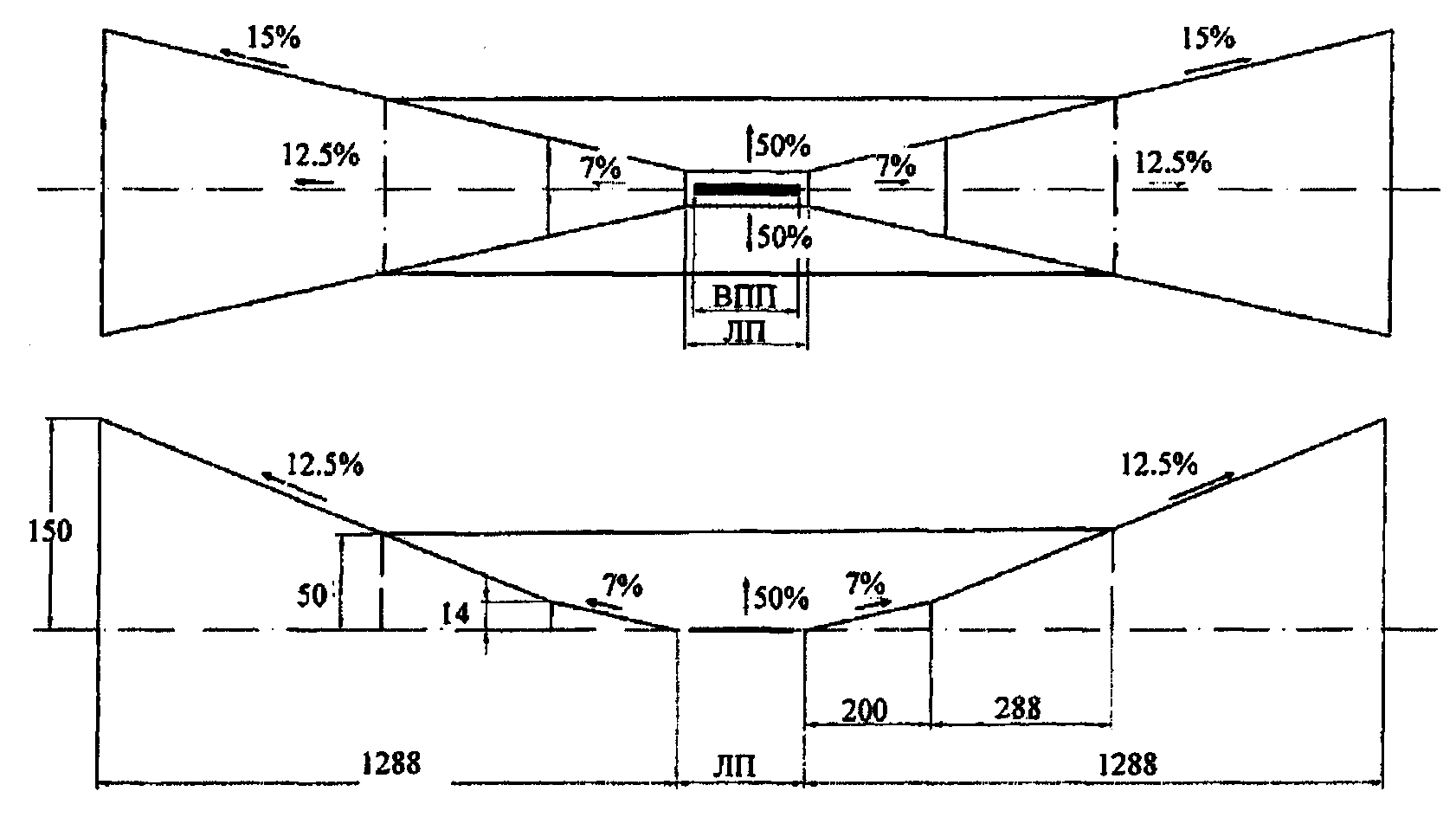 Грунтовая поверхность ЛП в местах сопряжения с искусственными покрытиями элементов вертодрома (ИВПП, обочинами, рулежными дорожками) должна располагаться на одном уровне с ними.