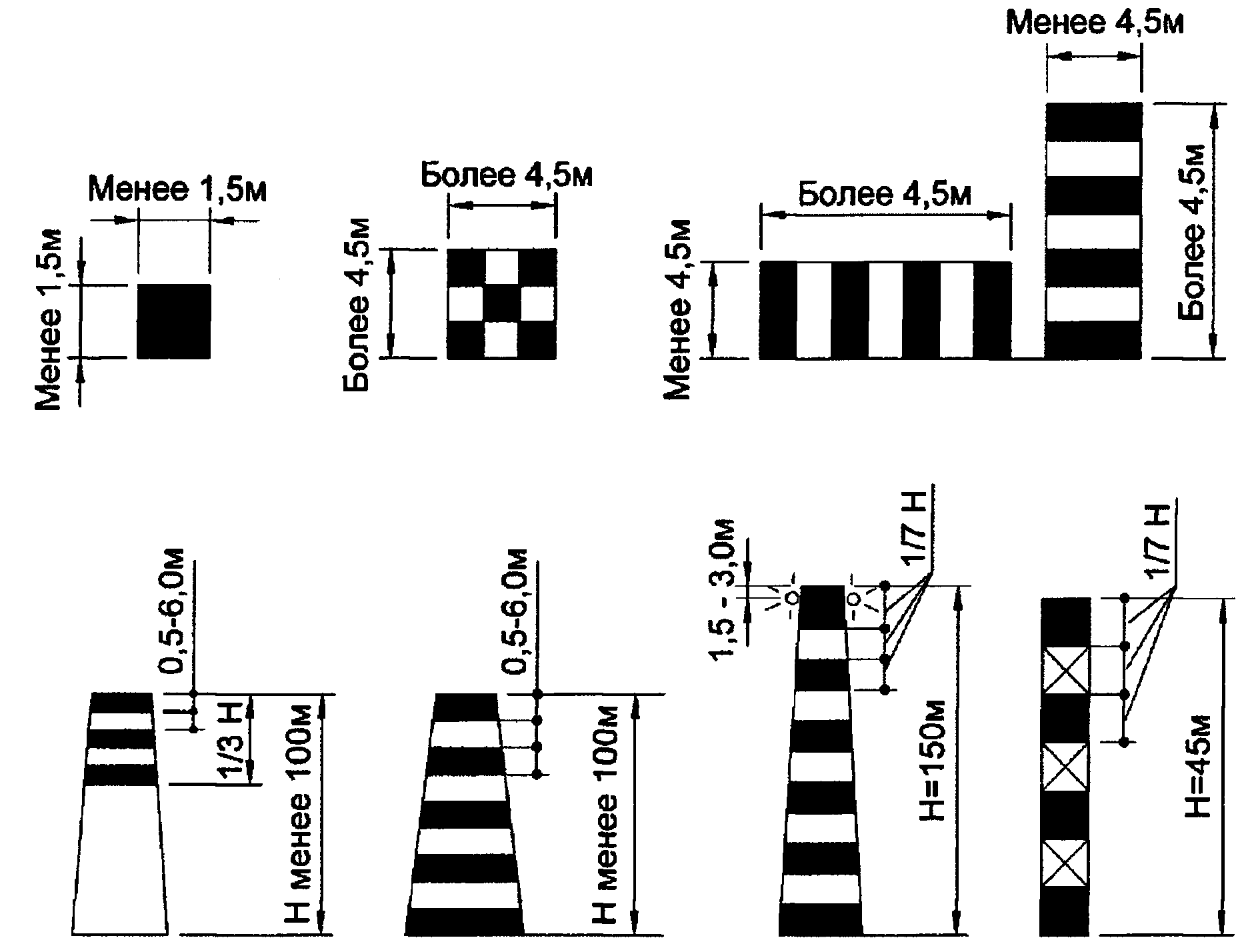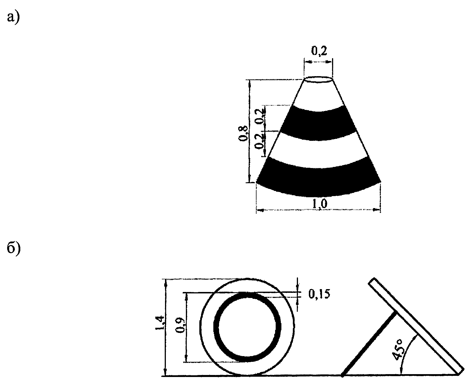 | Размеры сооружения, м | Ширина полосы в долях от наибольшего размера сооружения |