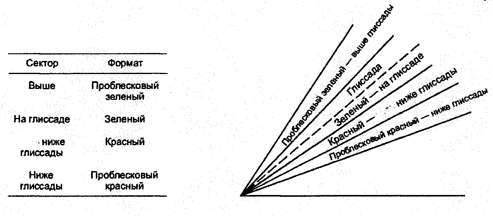 | а. Как указано на рисунке 1. б. Угол верхней границы сигнала "ниже глиссады". | |||