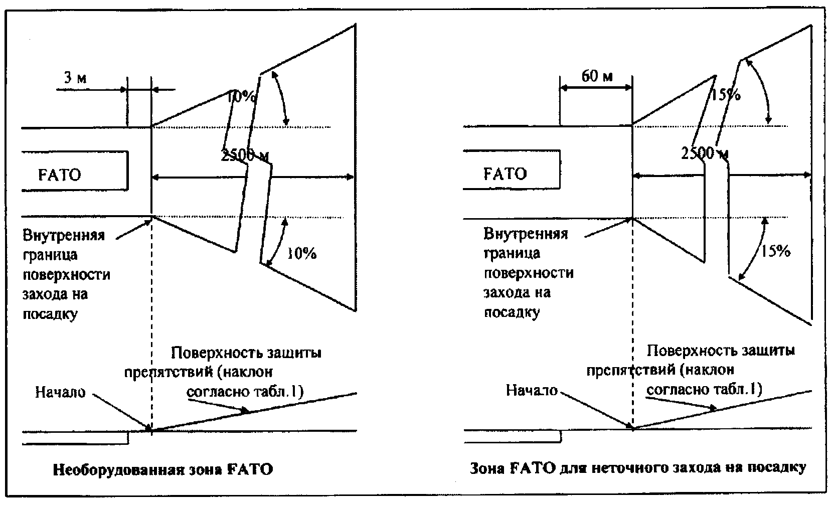 | ПОВЕРХНОСТЬ И РАЗМЕРЫ | НЕОБОРУДОВАННАЯ ЗОНА FATO | ЗОНА FATO ДЛЯ НЕТОЧНОГО ЗАХОДА НА ПОСАДКУ | |