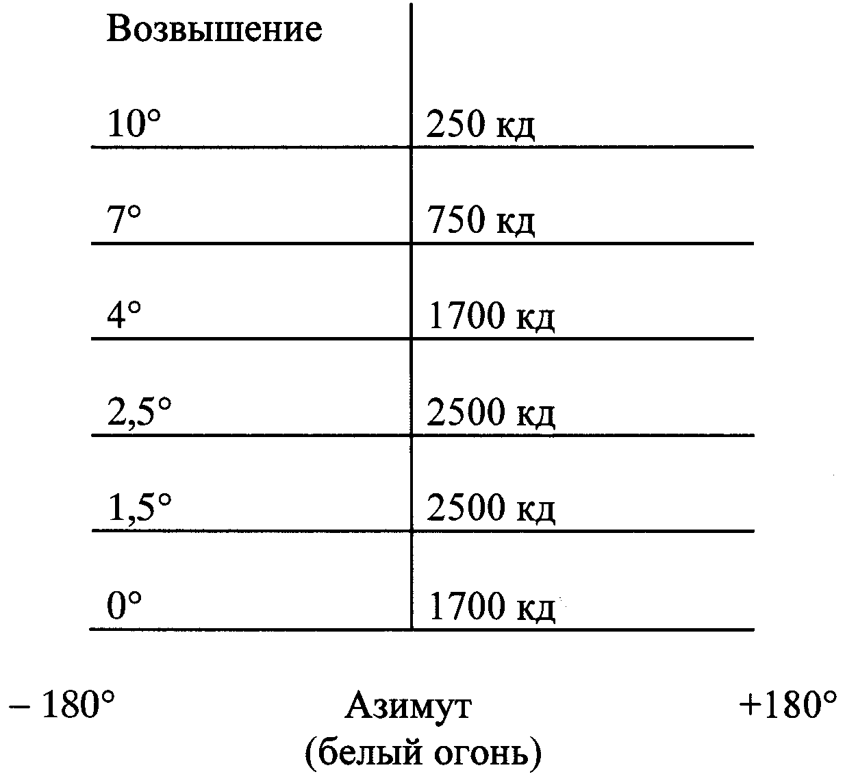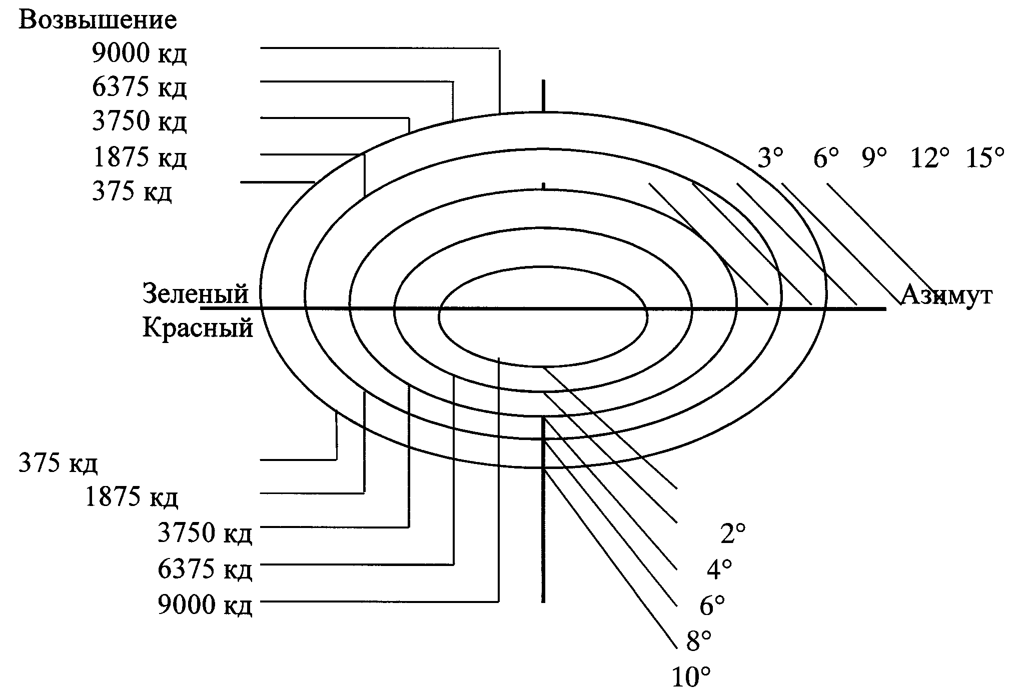 Рисунок 3. Распределение света огней приближения (огни белого цвета)
