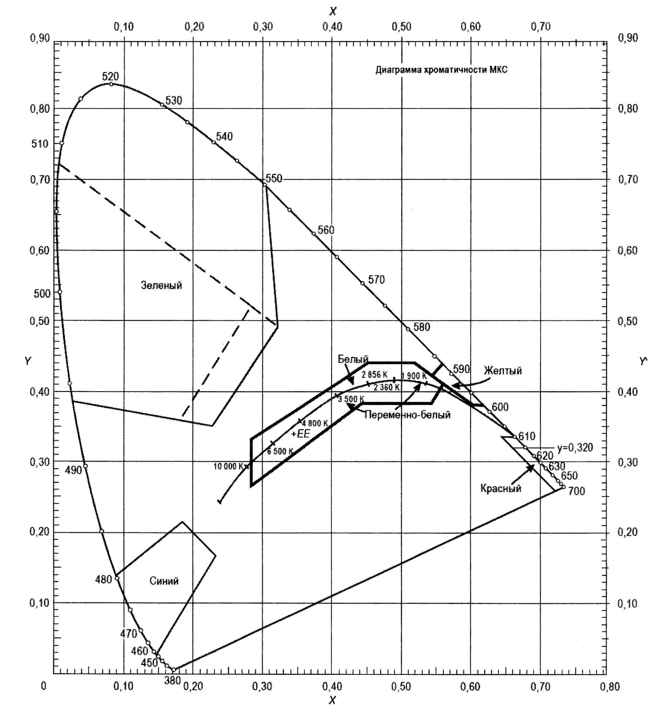 Рисунок 7. Цвета аэронавигационных огней с лампами накаливания в качестве источников света