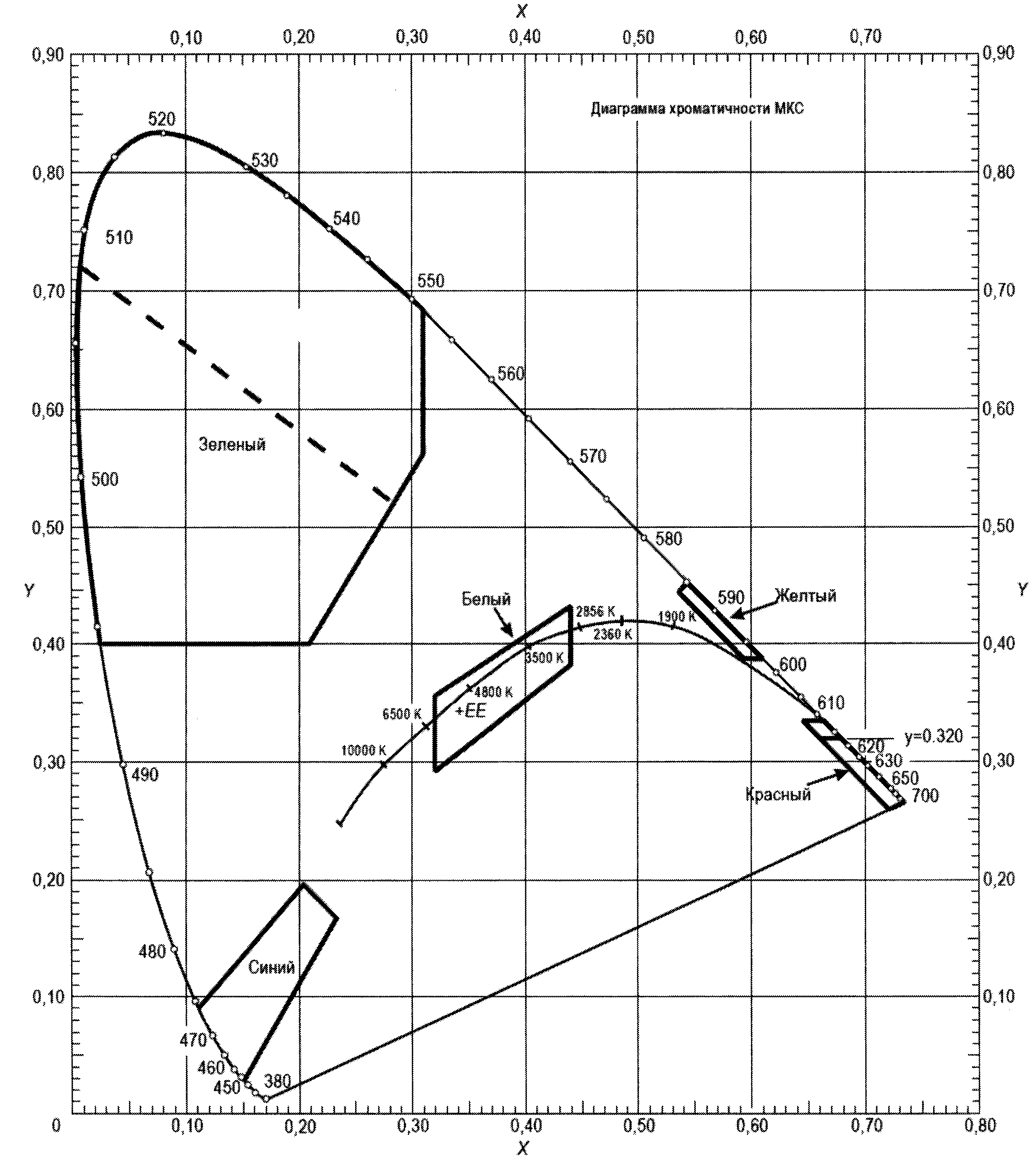 Рисунок 8. Цвета аэронавигационных огней с твердотельными источниками света