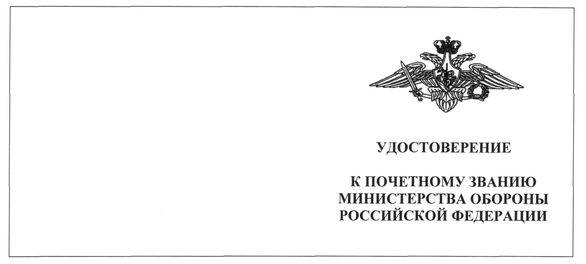 7. Объявление приказа Министра обороны Российской Федерации о присвоении почетного звания производится в торжественной обстановке. Лицу, удостоенному почетного звания, вручаются удостоверение и нагрудный знак к почетному званию. Рекомендуемый образец удостоверения к почетному званию приведен в приложении N 1 к настоящему Положению. Описание и рисунок нагрудного знака к почетному званию приведены в приложении N 2 к настоящему Положению.