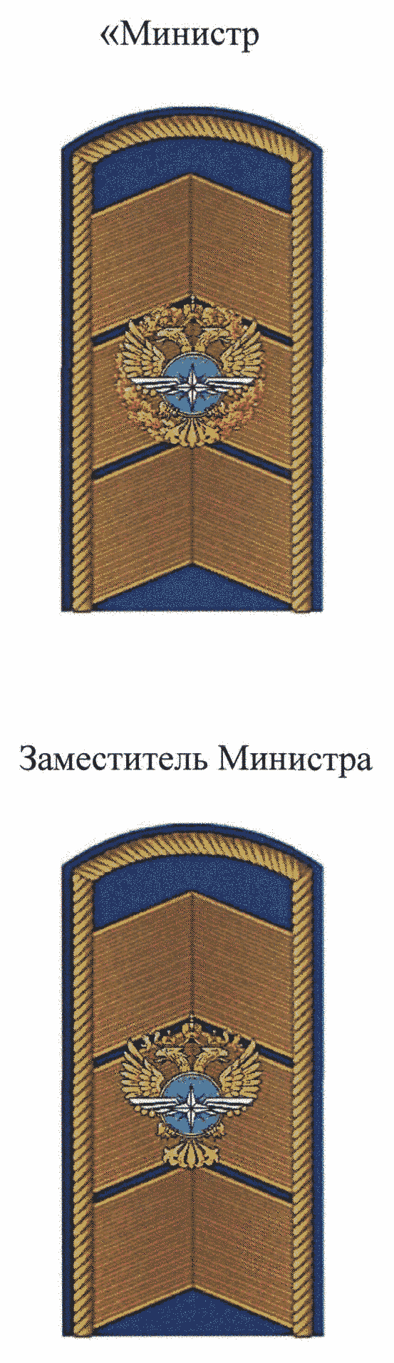 | 1 | - | - | Три широких галуна, в центре - вышитая большая эмблема Минтранса России в золотистом дубовом венке |