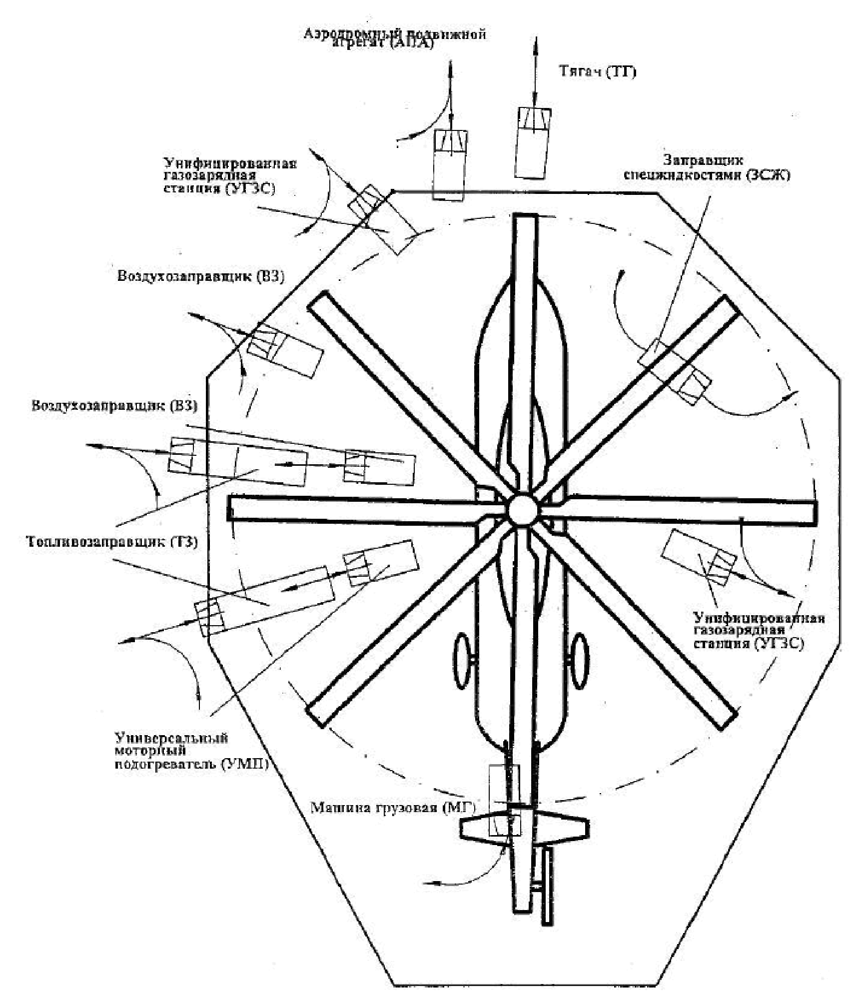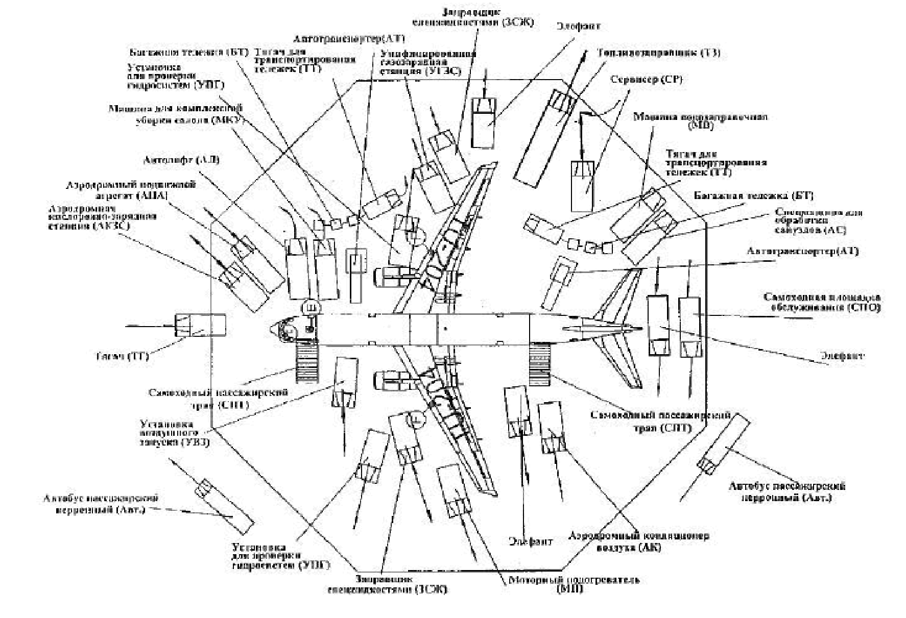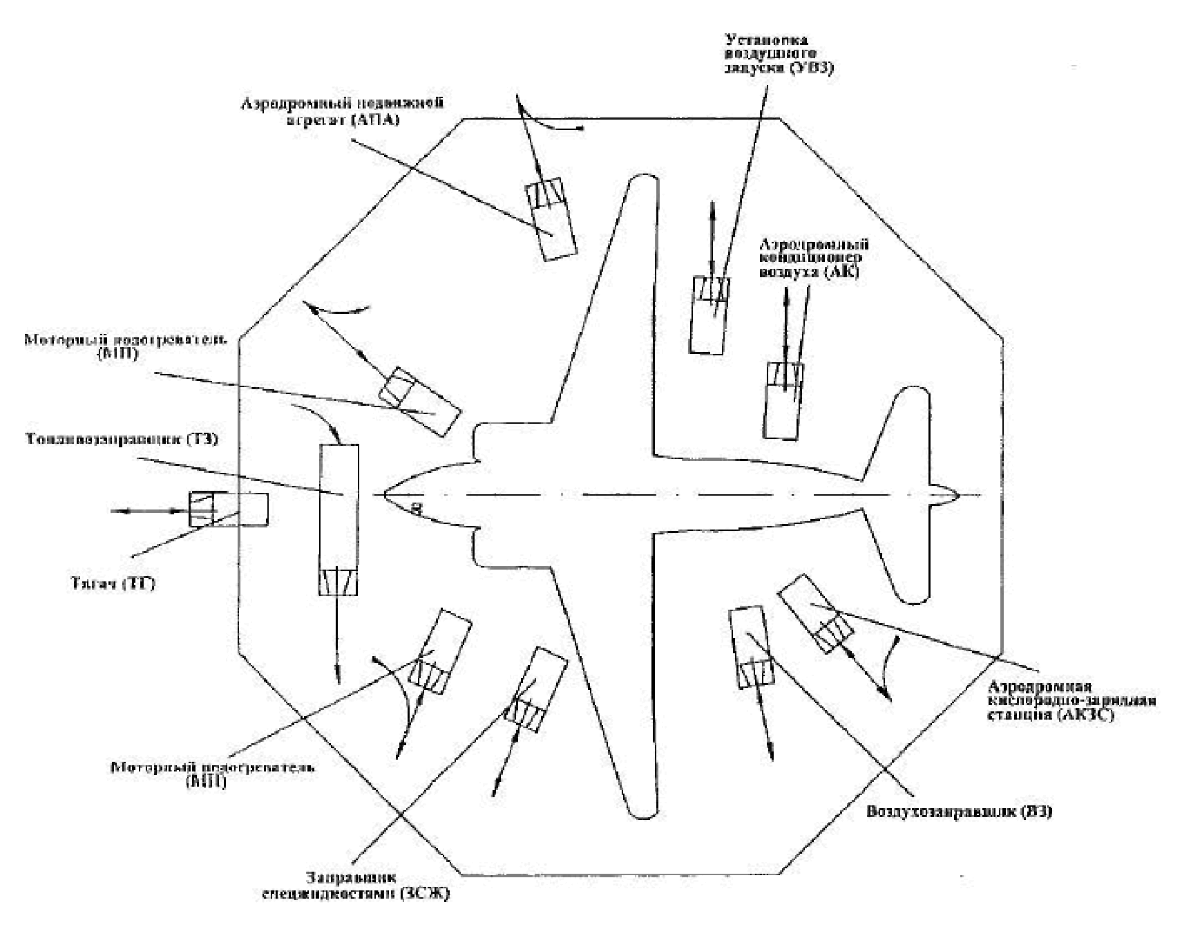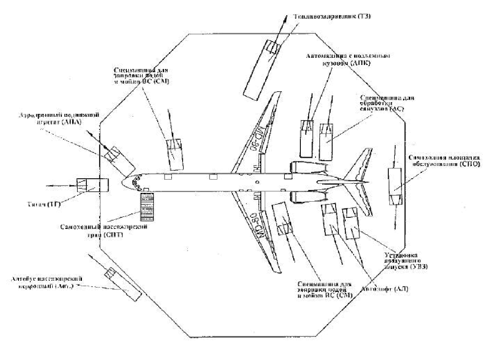 3. Схема расстановки и организации движения воздушных судов, спецтранспорта и средств механизации на аэродроме вывешивается в местах стоянок спецмашин, в классах служб главного оператора аэропорта и организаций, осуществляющих эксплуатацию спецмашин.