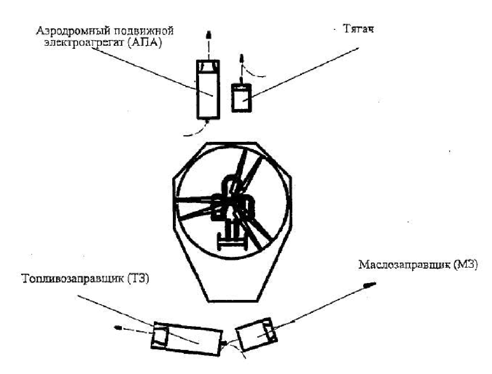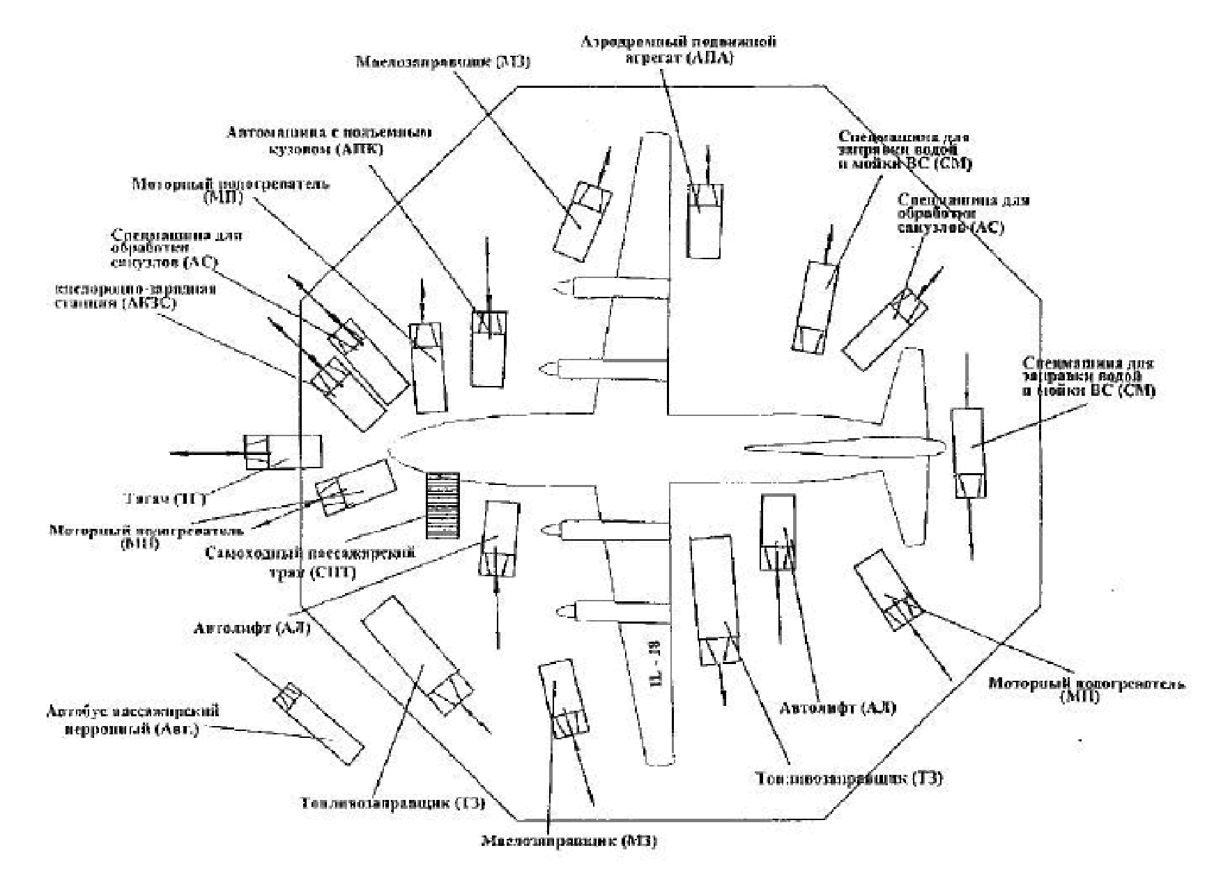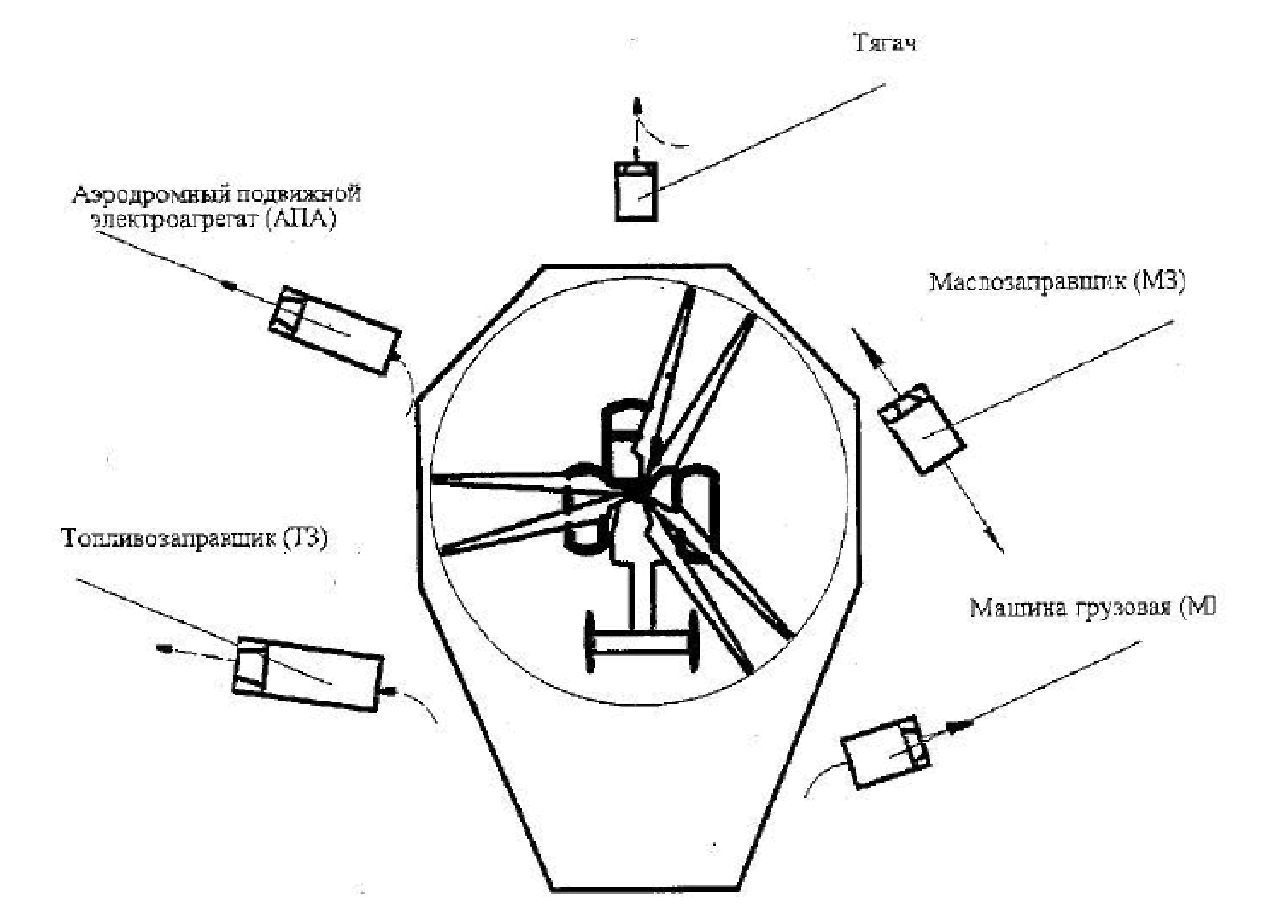 Типовые схемы подъезда (отъезда) и маневрирования спецмашин при обслуживании воздушных судов