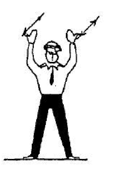 1. «ЕЗЖАЙТЕ НА МЕНЯ» - руки подняты вверх ладонями назад и двигаются назад-вперед. |