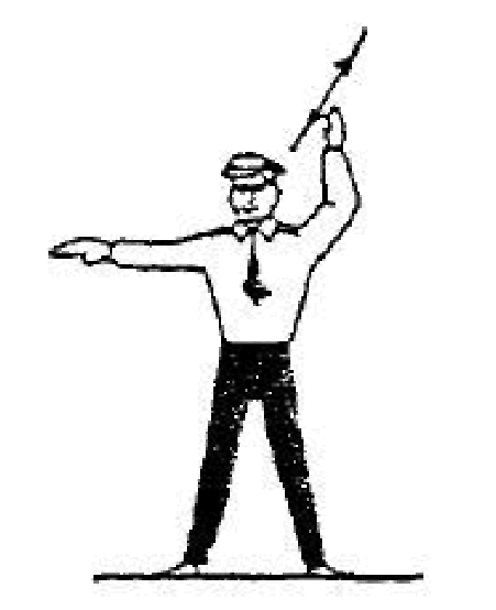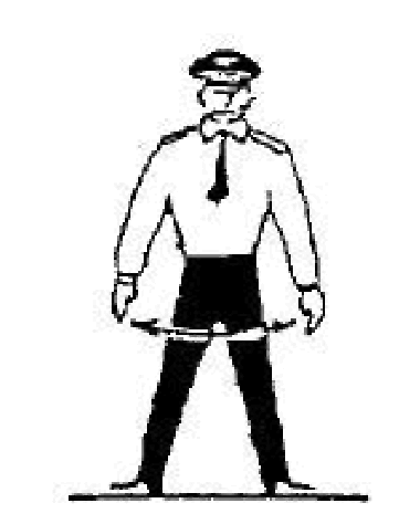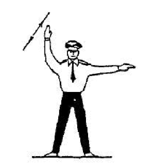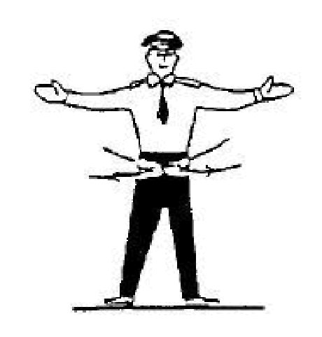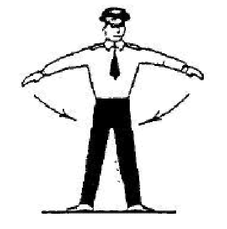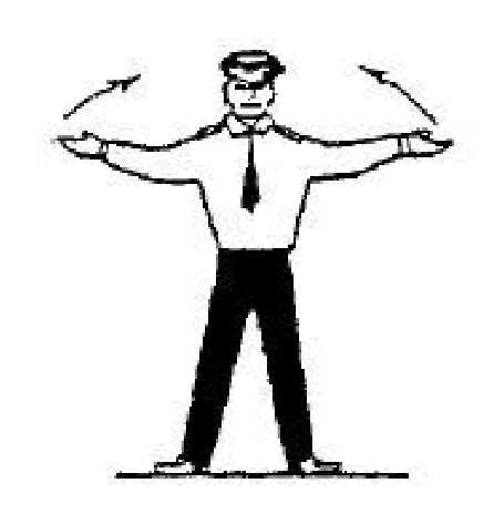 5. «ОТЪЕЗЖАЙТЕ ДЛЯ ПОВТОРЕНИЯ МАНЕВРИРОВАНИЯ» - руки опущены и несколько раз скрещиваются у ног перед собой. |