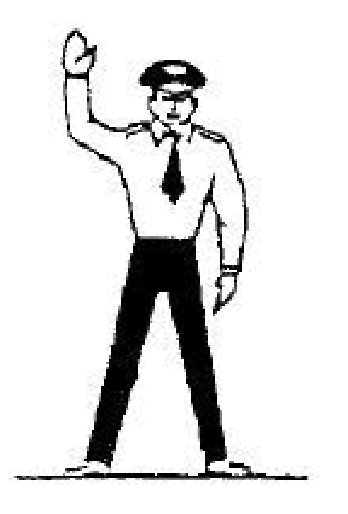 10. «ОТЪЕЗЖАЙТЕ» - правая рука, поднятая вверх ладонью вперед, двигается вперед-назад, левая рука опущена. |